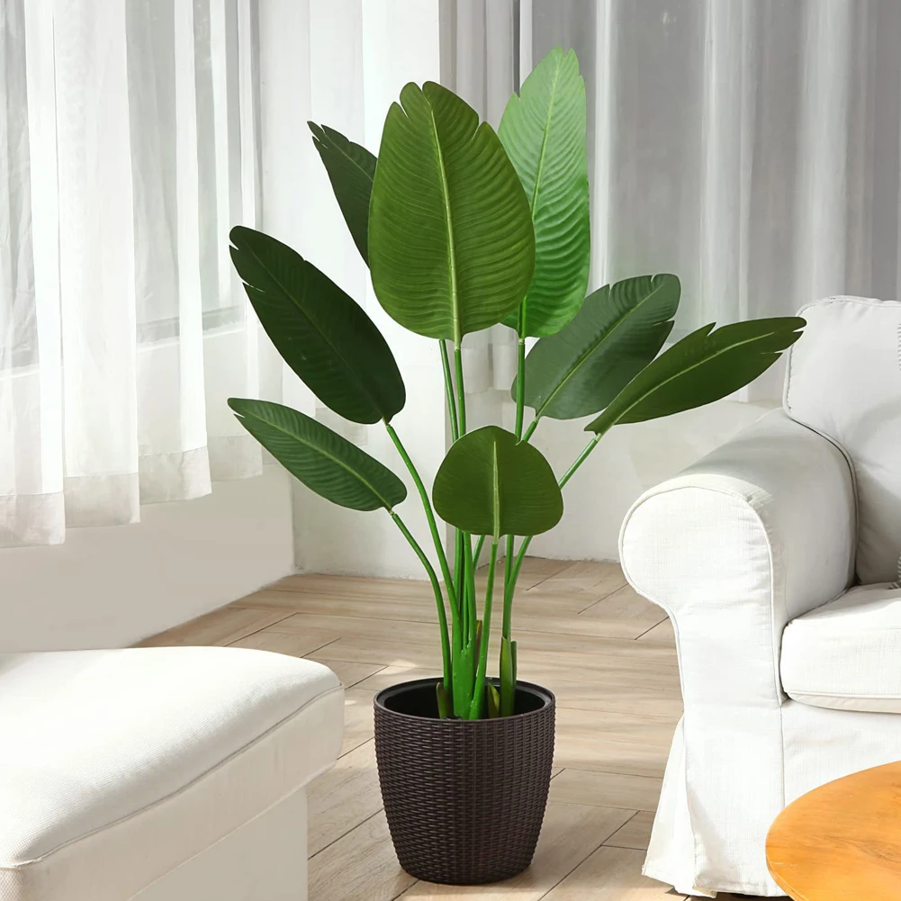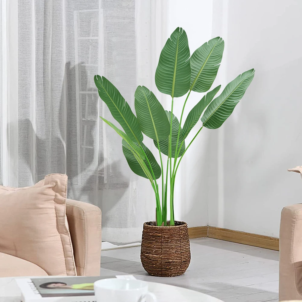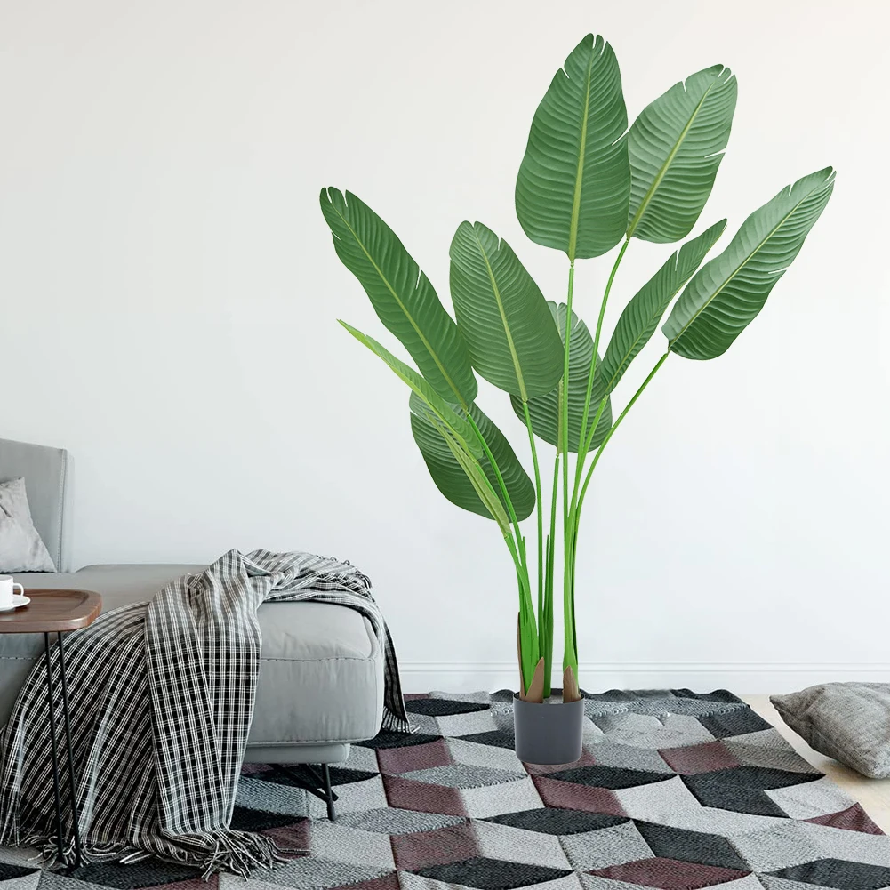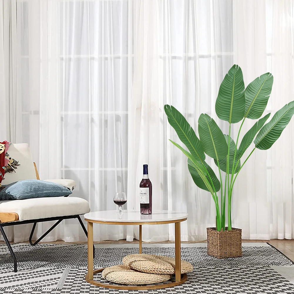 3. Easy to install: The artificial traveler banana can be disassembled and assembled, you can expand the branches to any arc according to your own needs, and can be easily rearranged according to your preferences, without watering and maintenance. For outdoors, we recommend placing it in a covered area to avoid direct sunlight.