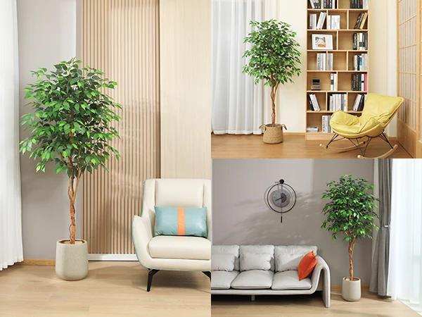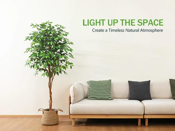 Ideal for indoor use, this faux tree requires no maintenance, making it a hassle-free home decor choice. This artificial ficus tree will elevate any room and create a calming ambiance. Add some greenery to your living room,bedroom, or office space with this stunning and easy-to-care for ficus tree.