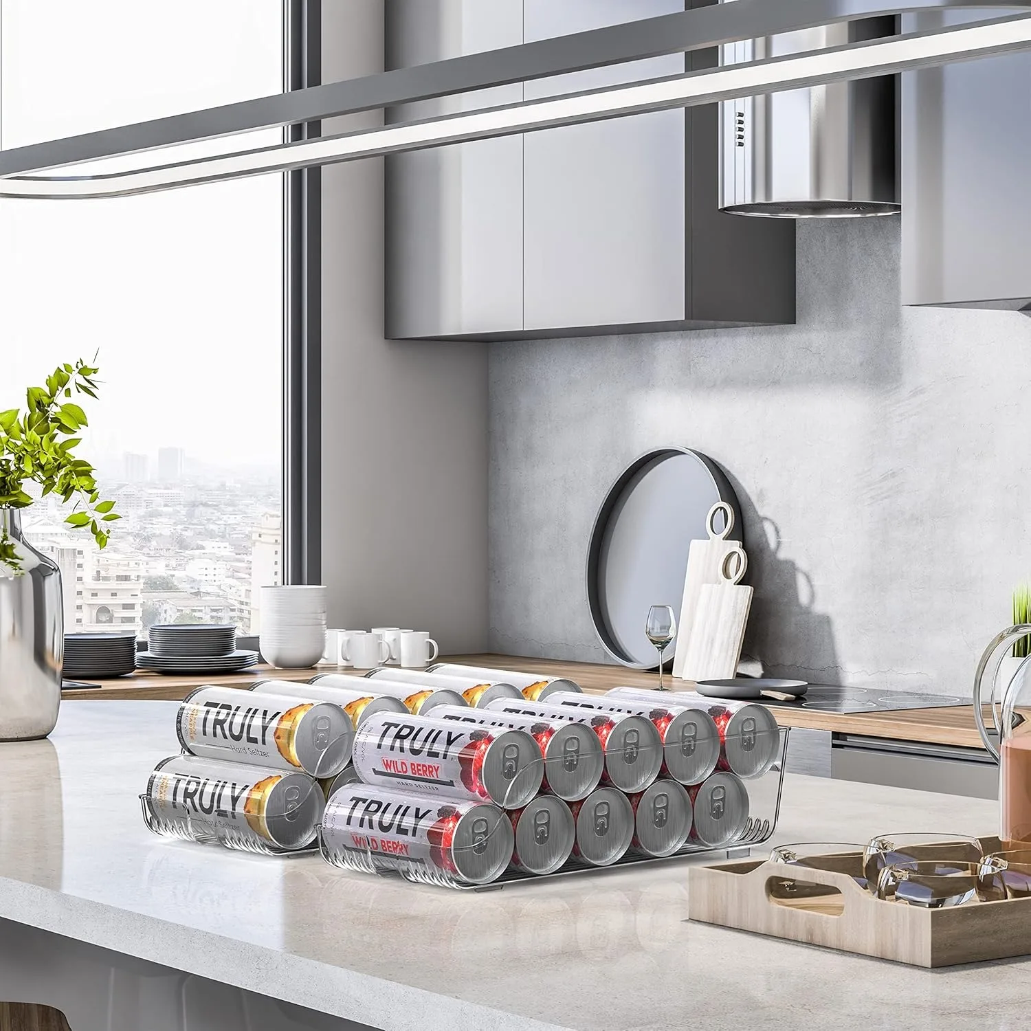 Plastic Box Simple Houseware Soda Can Organizer for Pantry / Refrigerator, Clear, Set of 2 Storage Box Storage Organizer