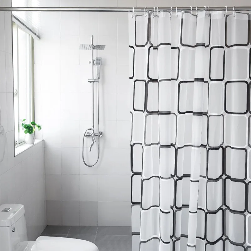 Elevate your bathroom with our modern geometric PEVA shower curtain! Featuring a sophisticated black grid pattern on a clean white background, this waterproof curtain combines contemporary style with practical functionality. Perfect for modern bathrooms, it creates a sleek, organized look while providing reliable protection against water and moisture.
